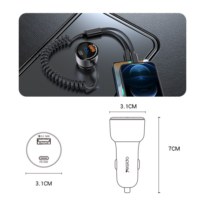 شحن سريع بقوة 60 واط يدعم شحن الهواتف المحمولة والأجهزة اللوحية وغيرها من الأجهزة. يدعم بروتوكولات QC وPD وPPS وSCP وSVP وغيرها. منفذ إشعال السيارة من 12 إلى 24 فولت تيار مستمر. الميزات: يدعم محول شاحن السيارة لدينا الشحن السريع بقوة 60 واط كحد أقصى. مزود بكابل تلسكوبي جديد، يغطي جميع أنواع السيارات. يشحن الهواتف المحمولة والأجهزة اللوحية وغيرها من الأجهزة. يدعم الشرائح الذكية لشحن متوازن لجميع الأجهزة، مما يضمن شحنًا أكثر أمانًا.