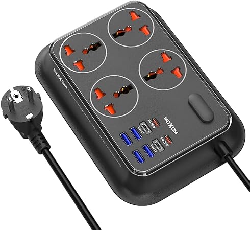 مقبس كهربائي 12 في 1 بتقنية PD، مزود بـ 4 مقابس، 7 منافذ USB، منفذ Type-C PD، ومفتاح تحكم رئيسي واحد، مناسب لأجهزة متعددة، بقوة 20 واط، بطول 3 أمتار - لون أسود