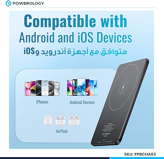 صُممت هذه البطارية لتناسب نمط الحياة العصري. تأتي بطارية Powerology فائقة النحافة بسعة 5000 مللي أمبير مع تقنية MagSafe بحجم صغير للغاية، حيث لا يتجاوز سمكها 0.65 سم، وتتناسب تمامًا مع أجهزتك المتوافقة مع MagSafe دون أي إزعاج.