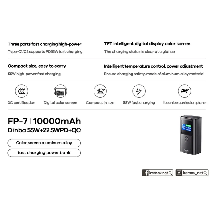 【شحن سريع قوي بتقنية PD بقوة 55 واط يوفر بنك الطاقة هذا بسعة 10000 مللي أمبير في الساعة شحنًا سريعًا بتقنية PD بقوة تصل إلى 55 واط من خلال منافذه من النوع C، وهو مثالي لشحن أجهزة الكمبيوتر المحمولة والأجهزة اللوحية والهواتف الذكية بسرعة.